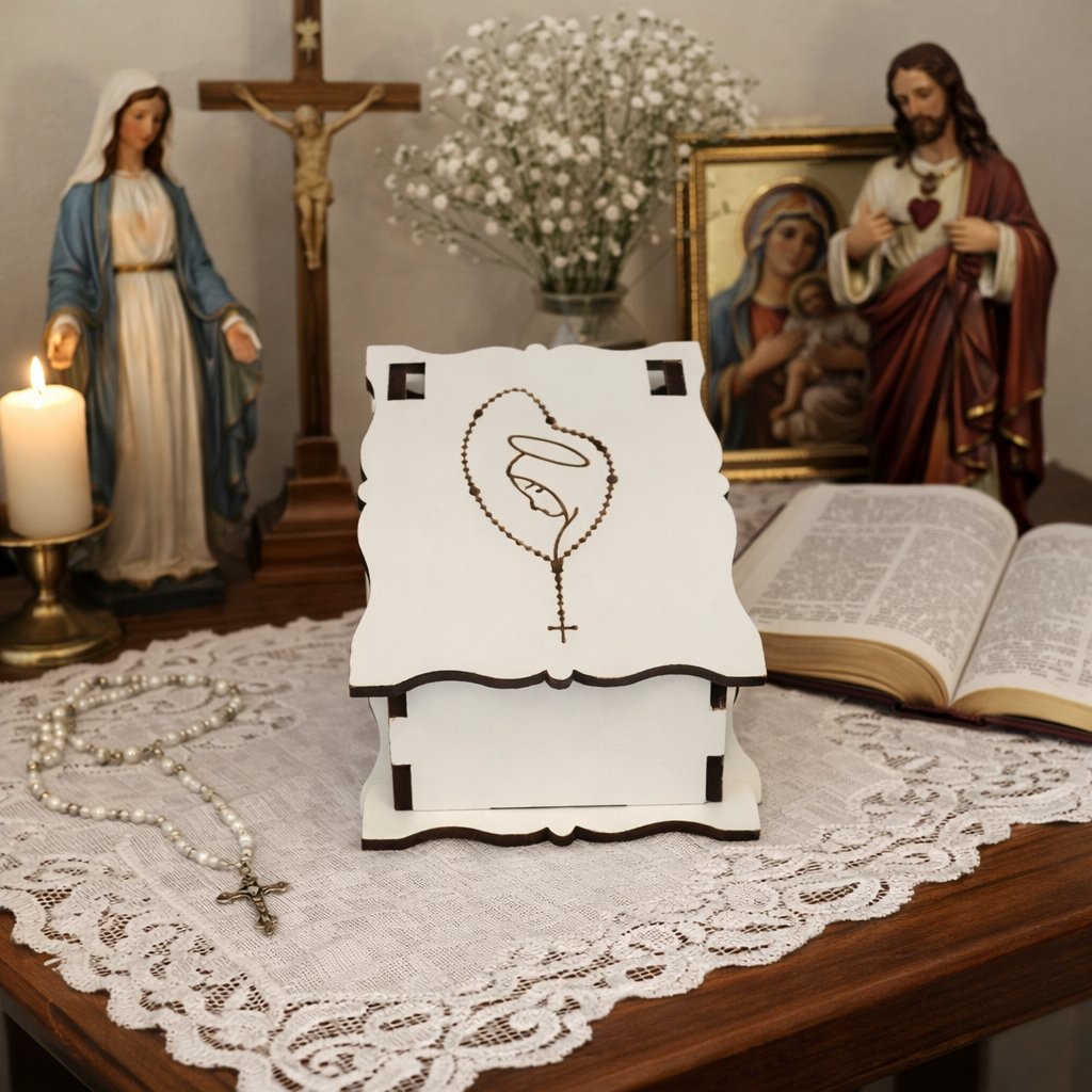 Encante fiéis e convidados com um porta terço delicado, funcional e cheio de significado. Ideal para eventos religiosos, esse modelo une fé, organização e um acabamento elegante, perfeito para valorizar qualquer lembrancinha católica.
